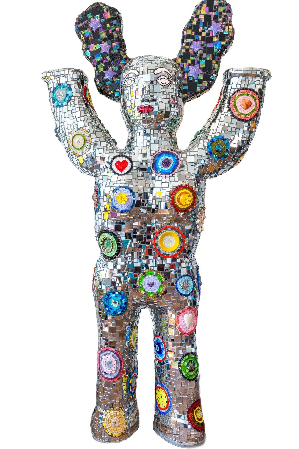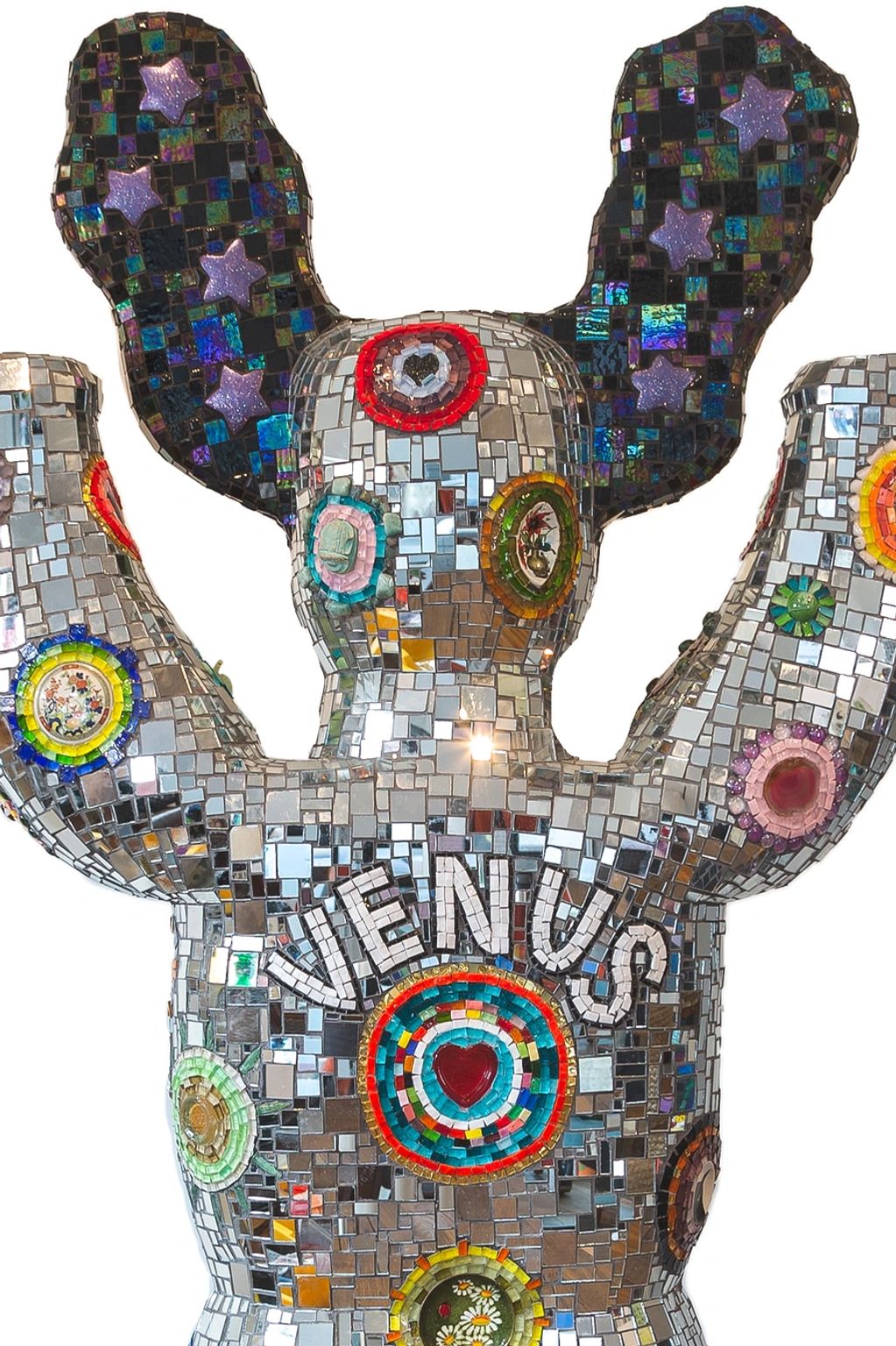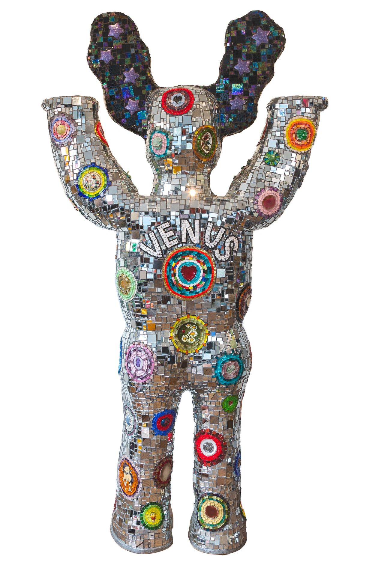 She is made from thousands of mirrors so that every person can see themselves through her. She is not afraid to show her flaws because showing our vulnerabilities is the best way to make a human connection. The "Circles of Life" on Venus, and all Iconostars represent love and community.